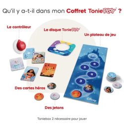 – Le Grand Quiz Disney (1 disque Tonieplay, 5 cartes Catégorie, 1 plateau de jeu, 15 jetons, 1 manuel)