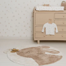 Le tapis Lapin est l'atout parfait pour réchauffer une pièce avec un sol froid. Il crée immédiatement un point d'ancrage visuel et ludique, encourageant l'enfant à s'installer au sol pour jouer avec ses peluches ou ses petites voitures.