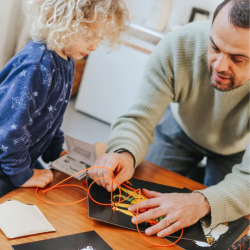 KIDYNEON propose une approche totalement nouvelle de la décoration murale pour enfants. Grâce à des fils lumineux colorés à effet néon, vos enfants créent des œuvres d'art personnalisées qui s'illuminent magiquement dans l'obscurité. Le principe est simple et captivant : ils insèrent les fils lumineux dans des supports perforés pour réaliser des motifs originaux qui brillent toute la nuit.