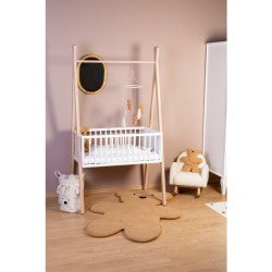 Ses pieds en bois et son assise rembourrée en tissu peluche lui confèrent un design élégant et intemporel, parfaitement dans l'air du temps des intérieurs scandinaves et naturels. La chaise à bascule offre non seulement du confort, mais elle est également magnifique avec son design épuré — un véritable accroche-regard dans la chambre d'enfant.