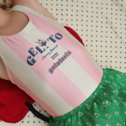 Conçu dans un tissu lisse, doux et à séchage rapide, il s'adapte parfaitement aux mouvements des enfants avec son excellente élasticité — idéal pour nager, jouer dans les vagues ou barboter en toute liberté. Ses rayures rose et blanc aux tonalités glace italienne en font une pièce incontournable des garde-robes estivales, de la petite enfance jusqu'à l'âge scolaire.