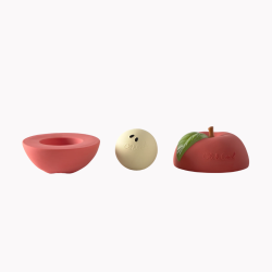 Empilez, secouez, faites rouler… et recommencez ! C'est un jouet bébé aussi ingénieux que poétique : un 3 en 1 qui se compose d'une tour à empiler en forme de fruit, d'une balle-hochet logée à l'intérieur et d'une balle rebondissante — le tout en caoutchouc 100 % naturel d'hévéa, sans plastique ni silicone.