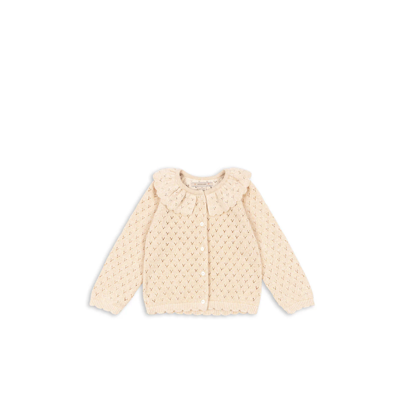 Cardigan en maille avec col rond et délicat motif à œillets.
