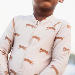 Idéale pour jouer, nager et courir partout sans craindre les coups de soleil, cette combinaison est aussi super stylée avec ses imprimés tendance qui sentent bon l'été !