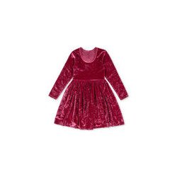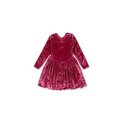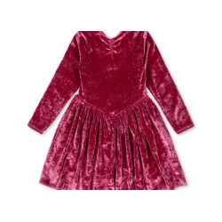 Robe douce et confortable en velours peluche. Coupe ajustée, jupe évasée et dos nu.