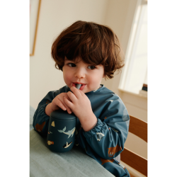 Bavoir avec manches léger pour les petits gourmands. Les poignets élastiques assurent un ajustement parfait, et la poche avant attrape les aliments renversés. Conçu en polyester recyclé durable, le bavoir avec manches est facile à nettoyer et peut être plié pour un rangement compact à la maison ou en déplacement.