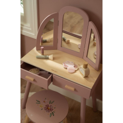 Prête pour un moment magique ? Avec cette magnifique coiffeuse en bois rose, les enfants se sentent comme de véritables princesses ! Grâce à son élégant miroir à trois volets, ils peuvent s’admirer sous tous les angles. Les tiroirs spacieux offrent suffisamment de place pour ranger tous les accessoires, bijoux et petits trésors. Un meuble charmant pour inventer des rituels de beauté et stimuler l’imagination à chaque instant !