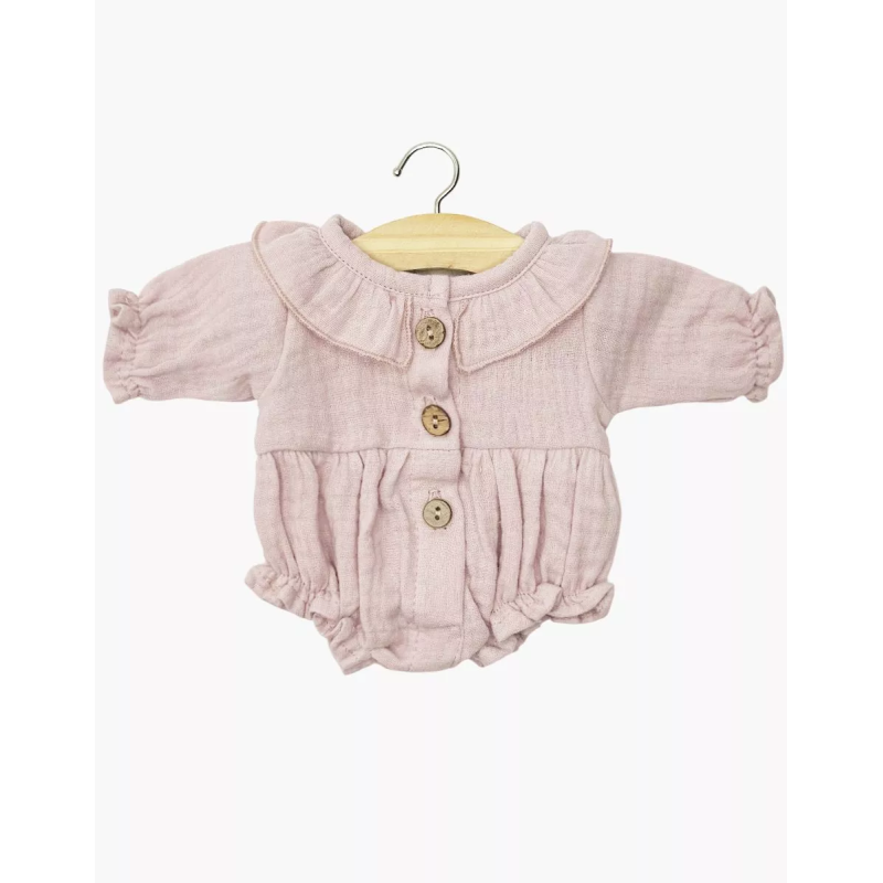 Barboteuse Léonore à manches longues en gaze de coton rose orchidée