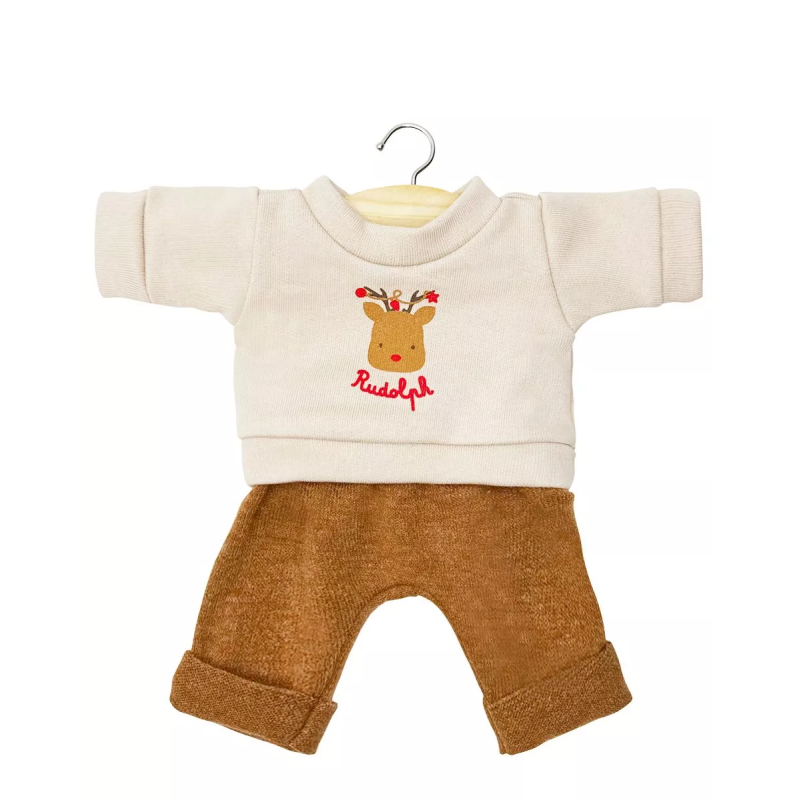 Ensemble Rudolph avec top en molleton lin et pantalon en tricot caramel