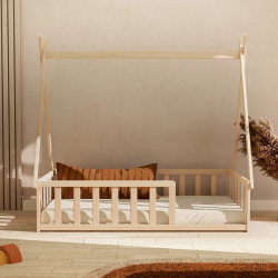 Transformez la chambre de votre petit bout en véritable terrain de jeu tout en douceur ! Avec ce lit tipi au sol 70 × 140 cm, votre enfant peut entrer et sortir à sa guise en sécurité — bye-bye les barrières lourdes, bonjour l’autonomie choisie !
