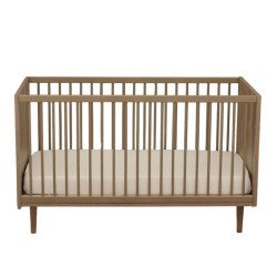 Dès la naissance, bébé est accueilli en toute sécurité dans son cocon à barreaux. Le sommier en hêtre brut se règle sur 3 hauteurs pour suivre ses évolutions : quand il commence à se lever tout seul comme un grand, on descend d'un cran. Simple, pratique, malin ! Puis vers 3 ans, hop — le lit se transforme en lit junior grâce au kit de transformation inclus. Pas de prise de tête, pas de budget surprise.