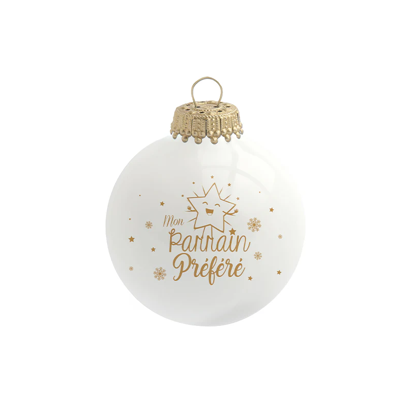 Fabriquée avec le soin et la qualité Baubels en verre soufflé, et sublimée par une inscription dorée, elle est faite pour devenir un souvenir durable. Il aura plaisir à l'accrocher sur son sapin chaque année, se souvenant de l'amour de son filleul(e).