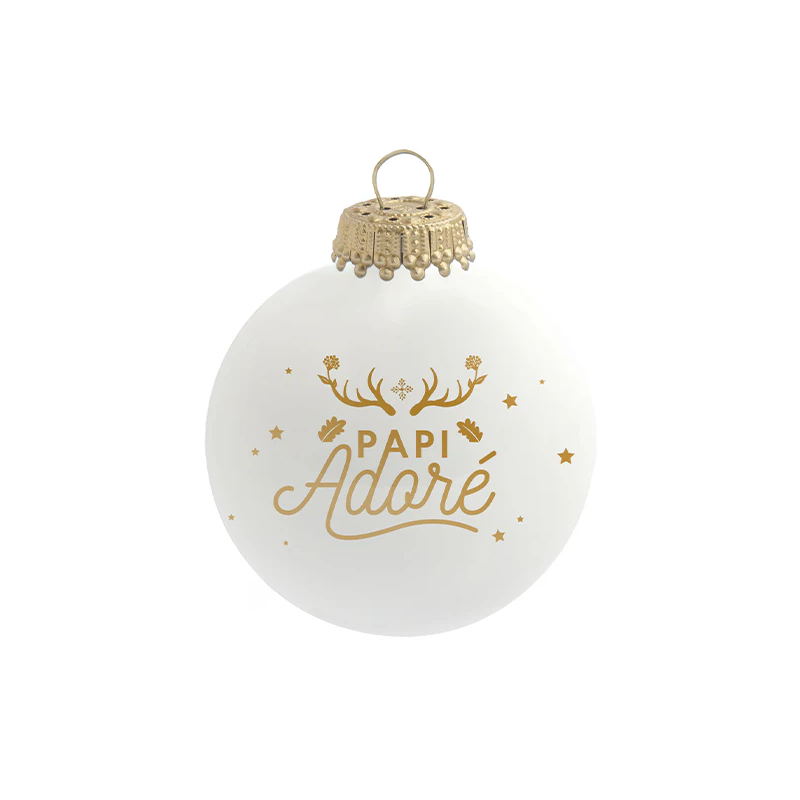 Cette magnifique boule de Noël "Papi Adoré" de la marque française Baubels est un cadeau de cœur pour lui témoigner toute l'affection qu'il mérite. C'est le présent idéal pour lui dire simplement "merci" ou pour l'émouvoir lors des fêtes de fin d'année.
