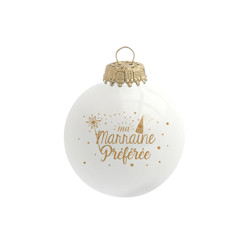 Cette magnifique boule de Noël "Ma Marraine Préférée" de la marque française Baubels est le cadeau de cœur parfait pour lui témoigner votre affection et votre gratitude. C'est l'attention idéale pour marquer son rôle lors d'un baptême ou pour la célébrer avec douceur à Noël.