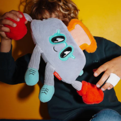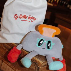 Rencontrez Punchy Toast, l'icône de la collection de peluches Hello Hossy®. Ce n'est pas un simple grille-pain : c'est un personnage plein d'énergie, doté de gants de boxe et de lunettes de soleil branchées. Ce compagnon de jeu inattendu insuffle une dose d'humour et de style Pop Art dans la vie de votre enfant, tout en offrant le réconfort d'un doudou moelleux.