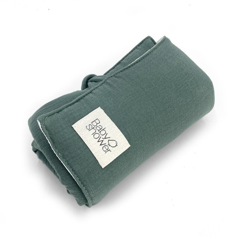 Tapis à langer nomade plastifié qui se garde enroulé dans le sac à langer. Fait avec de la gaze de coton Bio.