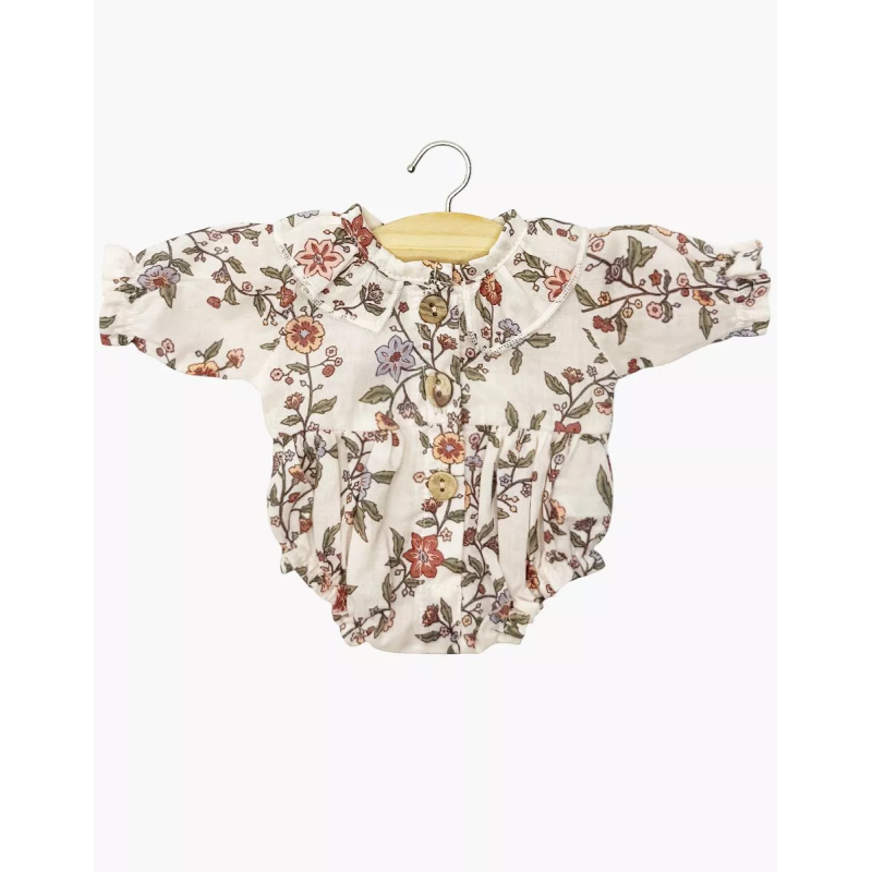 Cette barboteuse est une tenue raffinée, parfaite pour toutes les saisons. Confectionnée en Crépon (coton texturé léger), elle arbore l'imprimé floral Gisèle, qui apporte douceur et délicatesse à la poupée.