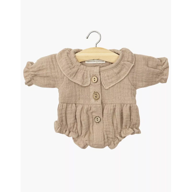 Cette barboteuse est une pièce classique de la collection Gaze de Coton, parfaite pour les saisons plus fraîches. Le tissu en double gaze de coton couleur Moka est particulièrement doux et confère un style bohème et intemporel à votre poupée Gordis.